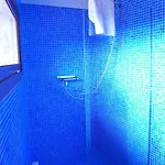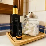 شطافة بيديه وحوض الاستحمام والدوش المنفصل موفرة في الحمام.